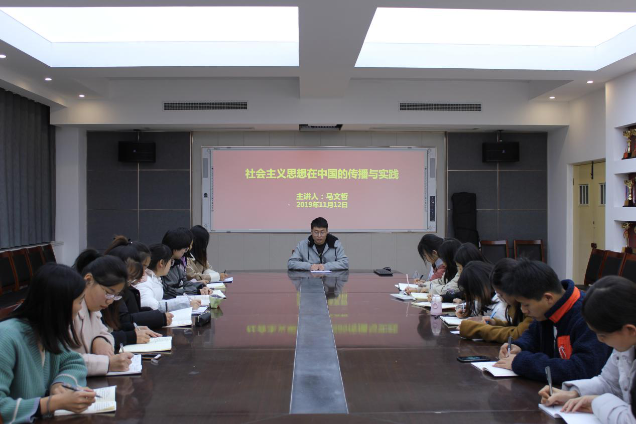 11月12日,bevictor伟德辅导员马文哲在生物楼会议室以《社会主义思想在中国的传播与实践》为题讲党课。学习过程中,马文哲从“中国共产党的历史是马克思主义在中国的发展史”、“中国共产党坚持和发展马克思主义的成功探索”、“坚持和发展马克思主义是中国共产党的永恒主题”三个方面,向同学们讲述了社会主义思想在中国的发展历程。“重温历史经典、感受时代魅力,弘扬传统文化、躬身社会实践,一个时代有一个时代的奋斗目标,一个时代有一个时代的青春理想,各位同学,应当努力追寻自己的榜样,敢于担当敢于作为,争做‘四有’青年。”