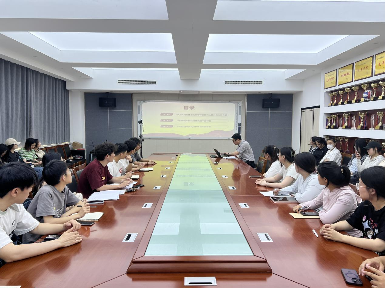 5月17日,园艺公司党委副书记、副经理孙海涛在生物楼N306会议室为培训班员工讲授党课,主题为“深刻理解中国式现代化的科学内涵、中国特色和本质要求”。孙海涛从“中国式现代化是实现中华民族伟大复兴的光明大道”“深刻把握中国式现代化的中国特色”“牢牢把握中国式现代化的本质要求”三个方面,紧密联系党史和社会主义发展史,为员工们系统阐述了什么是中国式现代化,引导员工们做有理想、敢担当、能吃苦、肯奋斗的新时代好青年。他指出,党带领人民成功走出了中国式现代化道路,创造了人类文明新形态,创造了世所罕见的经济快速发展和社会长期稳定两大奇迹,在奋进全面建设社会主义现代化国家新征程中,要更加坚定不移地以中国式现代化全面推进中华民族伟大复兴。最后,孙海涛引用习近平总书记的讲话殷切嘱托员工:要积极投身中国式现代化建设,在科技创新、乡村振兴、绿色发展、社会服务、卫国戍边等各领域各方面工作中,争当排头兵和生力军,展现青春的朝气锐气。