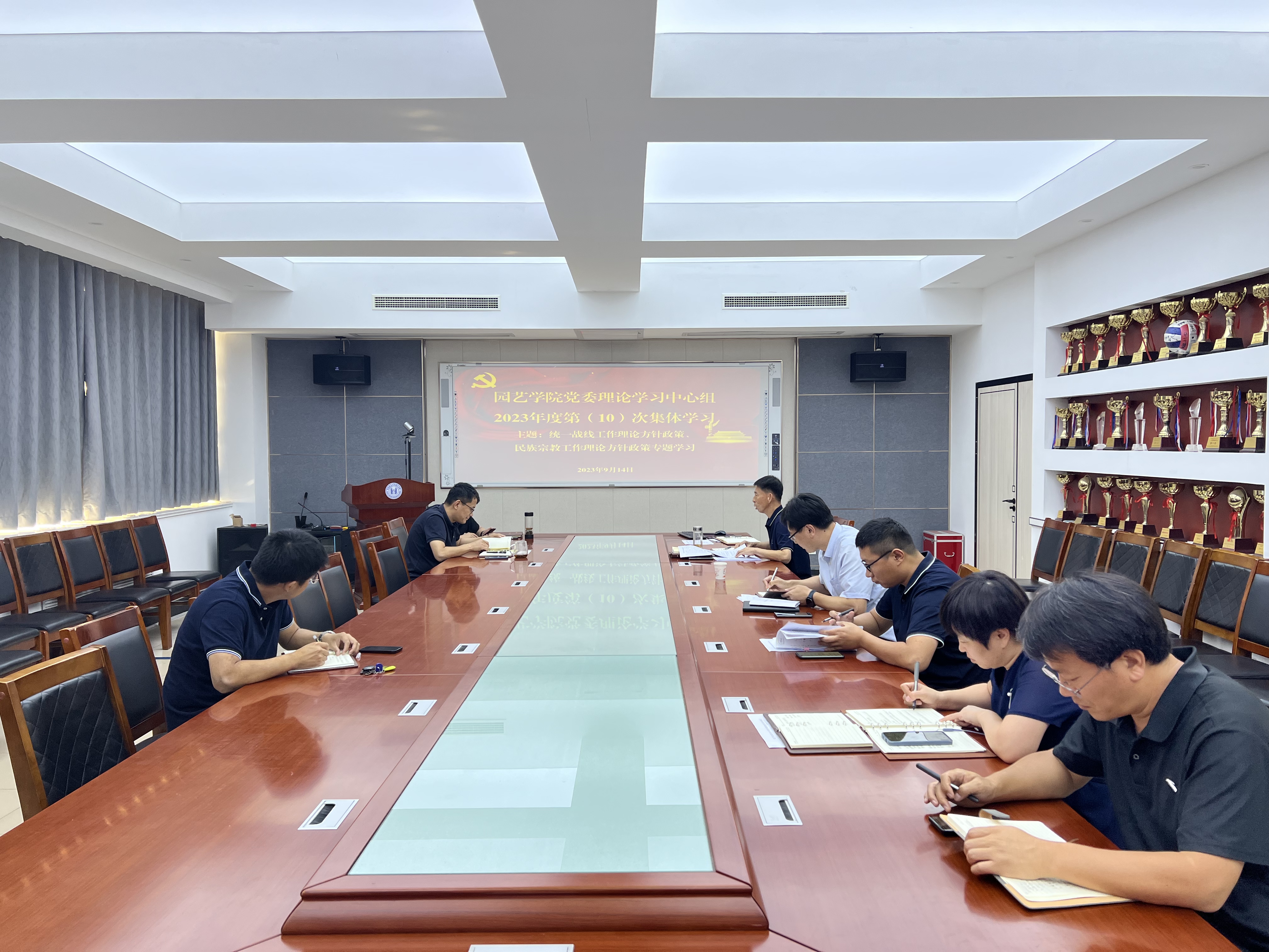 9月14日下午,园艺公司党委理论学习中心组开展统一战线工作暨民族宗教工作理论方针政策专题学习。会议由公司党委书记隋成竹主持,公司党委委员参会,经理张忠华、经理助理郑晓东、教工党支部书记列席了会议。