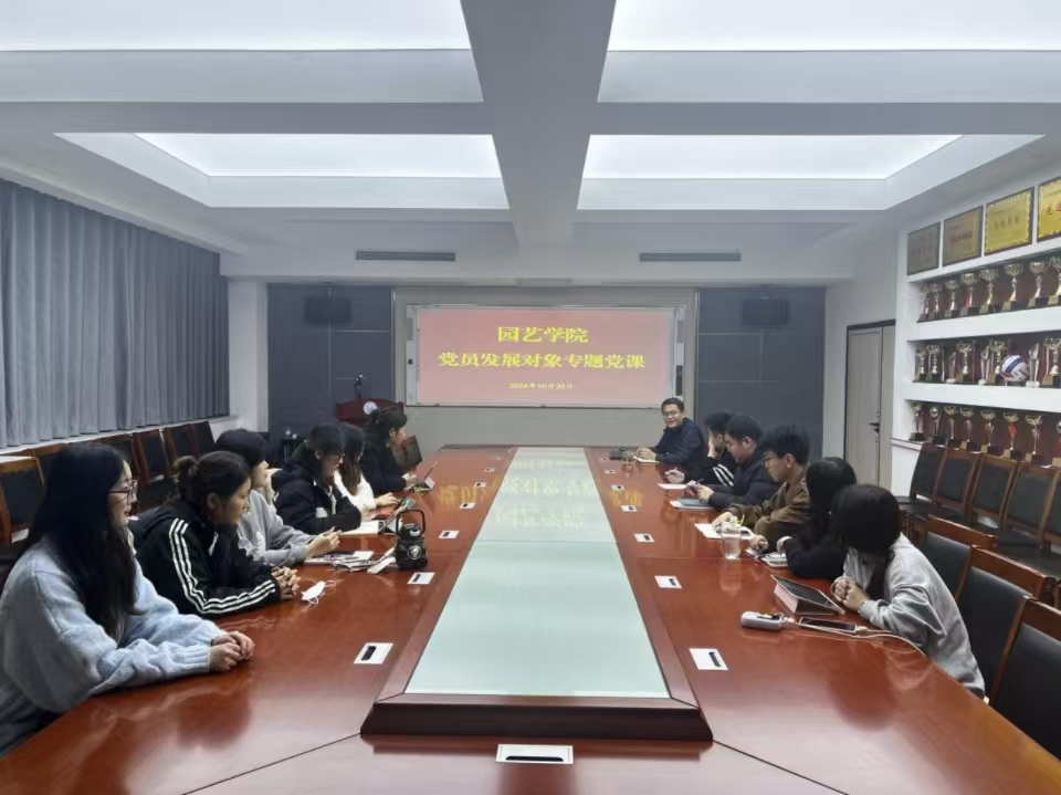 10月30日,园艺公司党委委员、副经理张新富在生物楼N306为党员发展对象讲授专题党课。课上,张新富围绕党的二十届三中全会精神,以“改革创新”为主题,带领同学们学习讨论了改革创新的内涵意义和做法。他指出,中华民族从站起来、富起来到强起来,如今能够屹立世界之林,展现大国国力,离不开改革开放和科技创新。我们要涵养勇于创新、敢想敢干的精神品质,结合专业所学,刻苦钻研,加强农业领域的实践创新。最后,他殷切嘱托各位同学,既要仰望星空,也要脚踏实地。要有矢志三农的远大抱负,也要夯实专业基础,勤于耕耘,做到厚积薄发,以实际行动助力科技强国建设,为实现高水平自立自强贡献青春力量。 .jpg)