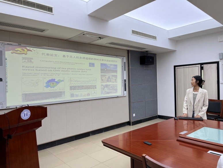 毛艺霖,2021级研究生,该生以第一作者共发表SCI论文4篇,累计影响因子19.8,获软件著作权2项,参与制定标准3项、撰写科技报告4项、申报发明专利2项。曾获2023年国家奖学金、山东省优秀毕业生、山东省研究生创新成果二等奖、一等学业奖学金、中国茶叶协会优秀墙报、深度学习与遥感实践专业人才技能证书等荣誉。