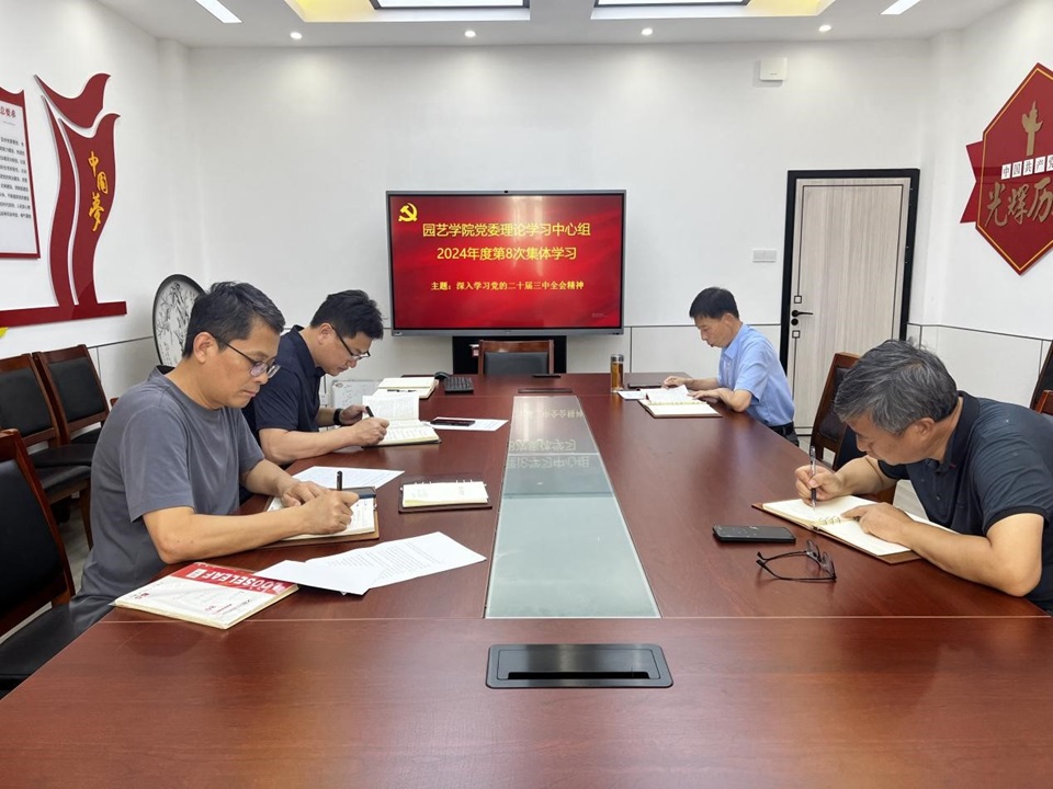 8月29日下午,园艺公司党委理论学习中心组在生物楼N304会议室召开学习会议,深入学习党的二十届三中全会精神、习近平法治思想、习近平总书记关于做好新时代党的统一战线工作的重要思想。会议由公司党委书记隋成竹主持,党委委员参会。