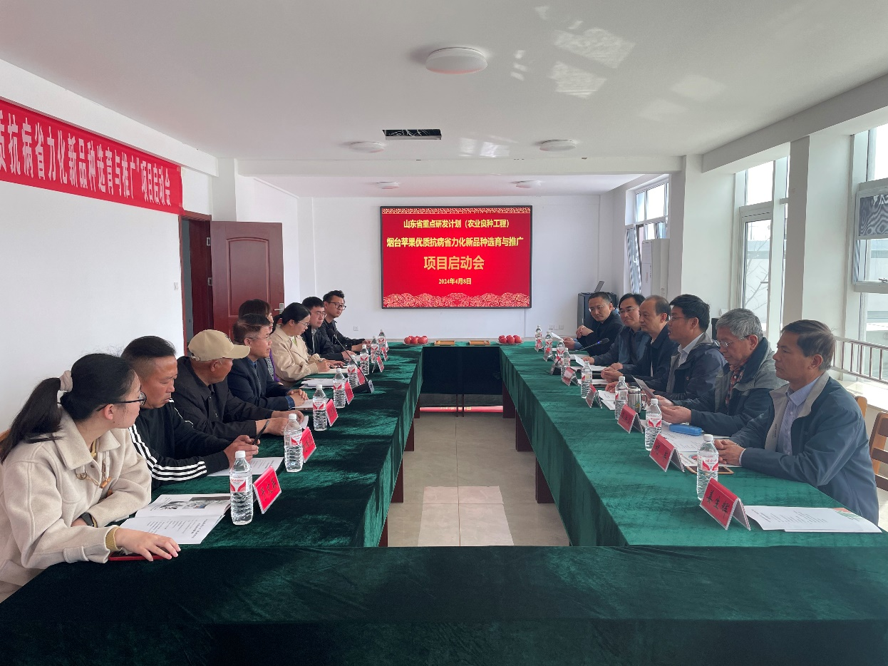 2024年4月月8日上午,由bevictor伟德张玉刚教授主持的2023年山东省重点研发计划(农业良种工程)“烟台苹果优质抗病省力化新品种选育与推广”项目启动会在莱州大自然园艺科技有限公司会议室召开。会议由莱州市科技局副局长提建新主持,莱州市科技局局长石坚伟到会并致辞,莱州市科技局钟玉敏科长、bevictor伟德戴洪义教授、祝军教授、姜生辉博士,烟台市农科院刘学卿副经理、赵玲玲所长,莱州大自然园艺科技有限公司宋永果董事长,烟台现代果业发展有限公司隋秀奇董事长、龙口市龙青农业科技开发公司王恩琪董事长及项目承担单位、合作单位相关成员共计20余人参加了会议。