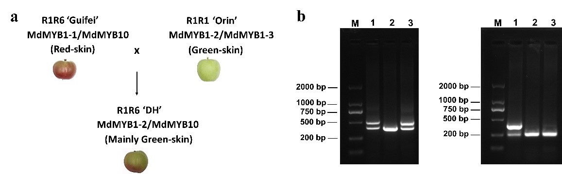 苹果 (Malus domestica Borkh.) 是世界上温带地区最重要的落叶果树之一,我国苹果的栽培面积和产量均居世界第一。同时,苹果色泽丰富,营养价值高,富含矿物质和维生素,耐贮藏,能够实现周年供应,是老百姓喜闻乐见的水果。果皮色泽是影响果实外在品质的重要因素,直接影响其商品价值。着色好的苹果更受消费者欢迎,果皮的鲜艳程度主要由花青苷的含量决定。在苹果中DNA甲基化参与成熟期果实色泽的形成机制已研究清晰,然而果实发育过程中果皮褪色机理及是否有DNA甲基化的参与还不清晰。