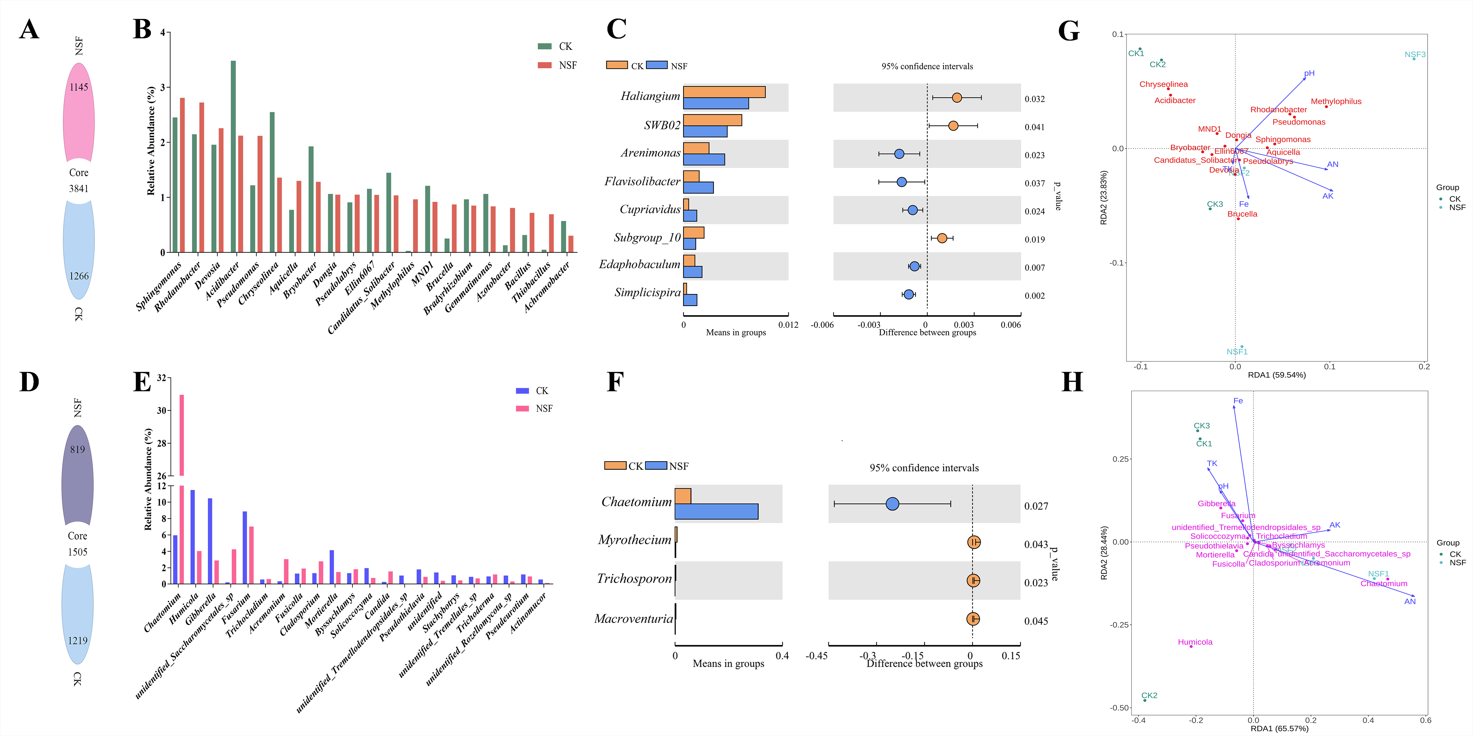 施用FSBM使根际土壤有机质、总氮、有效氮和有效磷含量分别提升39.64 %、26.24 %、33.67 %和28.59 %,土壤脲酶和过氧化氢酶活性增强。Sphingomonas(氮循环)、Rhodanobacter(拮抗镰刀菌)、Devosia(降解酚酸)、Chaetomium(抑病原菌/降解有机物)等根际有益微生物丰度提升。