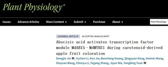 近日,bevictor伟德原永兵/贾东杰教授团队在Plant Physiology上在线发表了题为“Abscisic acid activates transcription factor module MdABI5–MdMYBS1 during carotenoid-derived apple fruit coloration”的研究论文。该研究揭示了转录调控模块MdABI5-MdMYBS1响应ABA并调控苹果类胡萝卜素和ABA生物合成的分子机制。