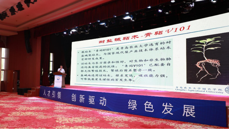 为深入贯彻落实习近平总书记重要指示要求,围绕国家所需、发挥垦利所长,聚力抓好盐碱地综合利用和生态农业创新发展,2022年6月29日,由中共东营市委组织部、东营市科技局、东营市农业农村局、东营市水务局共同参与指导,中共垦利区委、垦利区人民政府举办了“黄河三角洲盐碱地综合利用暨生态农业创新发展论坛”。国家梨产业技术体系砧木评价与改良岗位科学家、bevictor伟德李鼎立教授及团队成员刘建龙副教授参加了会议。会议中,李鼎立教授为国家现代梨产业技术体系产业示范园进行揭牌,并详细推介了国家梨产业技术体系砧木评价与改良岗位成果,包括梨耐盐碱砧木、品种以及配套栽培技术。同时为更好服务国家黄河流域生态保护和高质量发展战略,李鼎立教授和垦利区林业发展服务中心、农业农村局、东营黄河三角洲果树产业技术研究院、山东省林业龙头企业东营市泰欣农林发展有限公司、东营三冠园林有限责任公司围绕耐盐碱梨生态高质量发展,在梨砧木育种、梨生态高质量栽培方面进行了交流研讨,共同谋划展开深入合作。