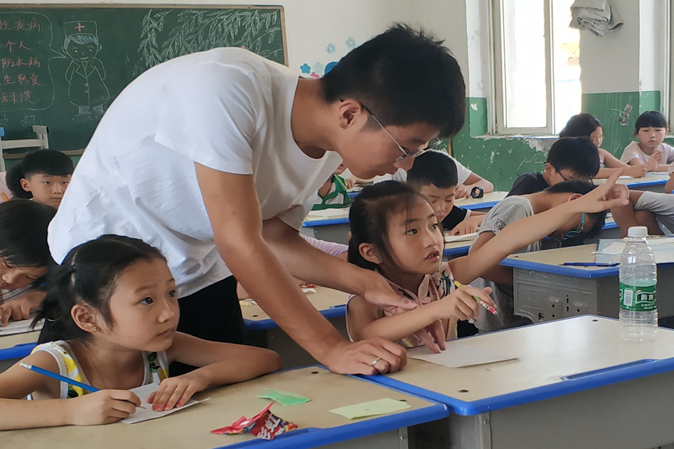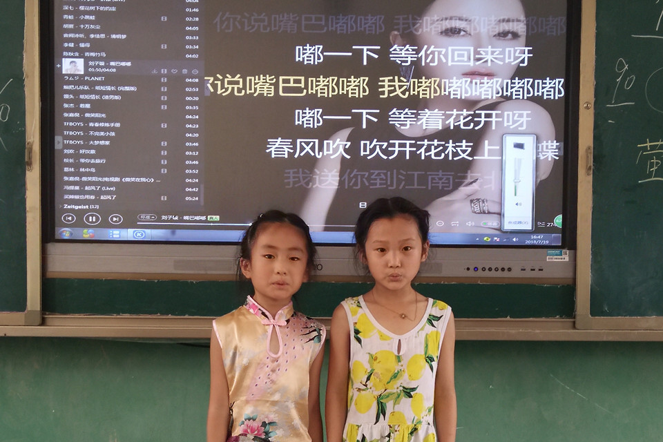 “你说嘴巴嘟嘟,我嘟嘟嘟嘟嘟……”菏泽曹县明德小学某班的课堂里传出一片悦耳的嘟嘴巴的声音,原来是队员们在给孩子上音乐课。“孩子听说上音乐课可开心了,积极性超级高。都不用我们多带,自己就跟着伴奏唱起来了。”队员董翠娜声音欢快。童声清脆,旋律悠扬,夏天的酷热似乎都被冲散了。
