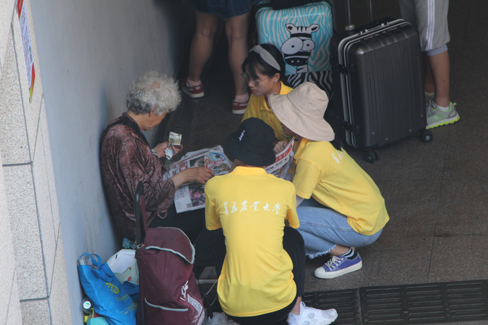 老人布满皱纹的脸上瞬间充满敬意,模糊的眼睛里闪烁出希望的亮光,老人说:“报纸是个好东西,里面有党的方针政策,有党带领人民取得的巨大成就......我虽然卖的是报纸,但我觉得我传递的是能量。”