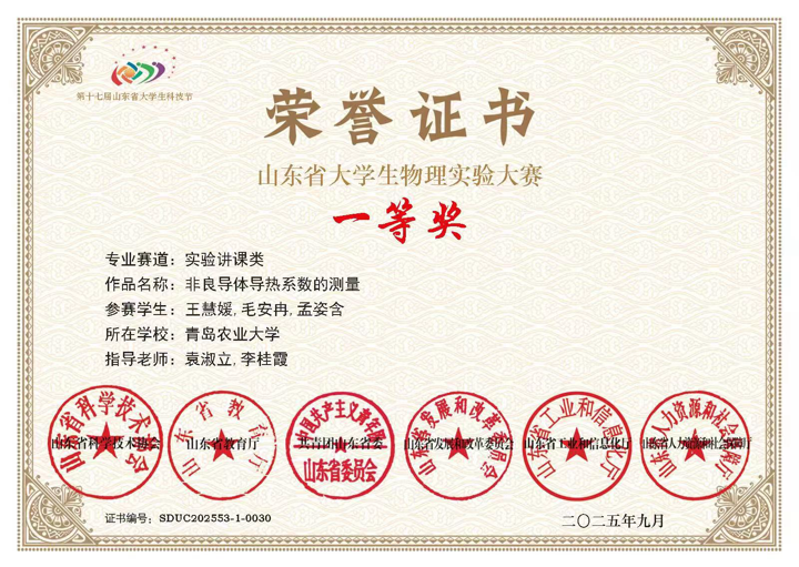7月至8月下旬,由山东省科协、省教育厅、团省委、省发展改革委、省工业和信息化厅、省人力资源社会保障厅联合主办,山东省物理学会联合省内高校承办的2025年山东省第十七届老员工科技节山东省老员工物理实验大赛的讲课类在鲁东大学举行。来自山东大学、中国海洋大学、中国石油大学(华东)等全省35所高校1884支队伍参加比赛。经过激烈的角逐,公司设施2402班王慧媛等组成的队伍荣获省级一等奖;园艺2401班贾淑涵参加队伍荣获省级二等奖。