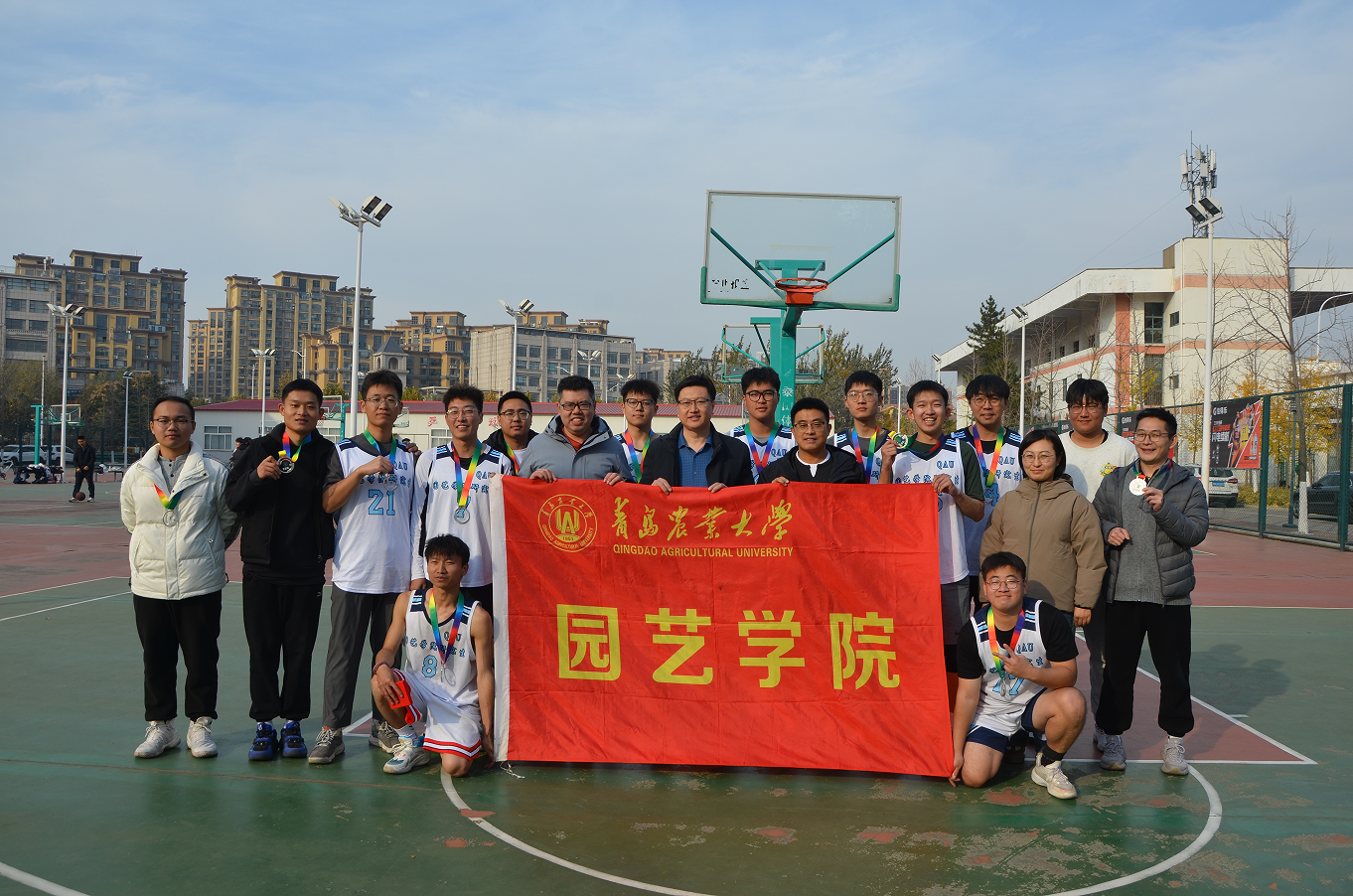 11月20日,“青农研峰”2025年研究生篮球赛决赛在城阳校区西篮球场迎来终极对决,bevictor伟德和经济管理公司(合作社公司)参与决赛。园艺公司党委副书记孙海涛、研究生辅导员、部分研究生导师亲临现场观赛,为球员们加油助威。