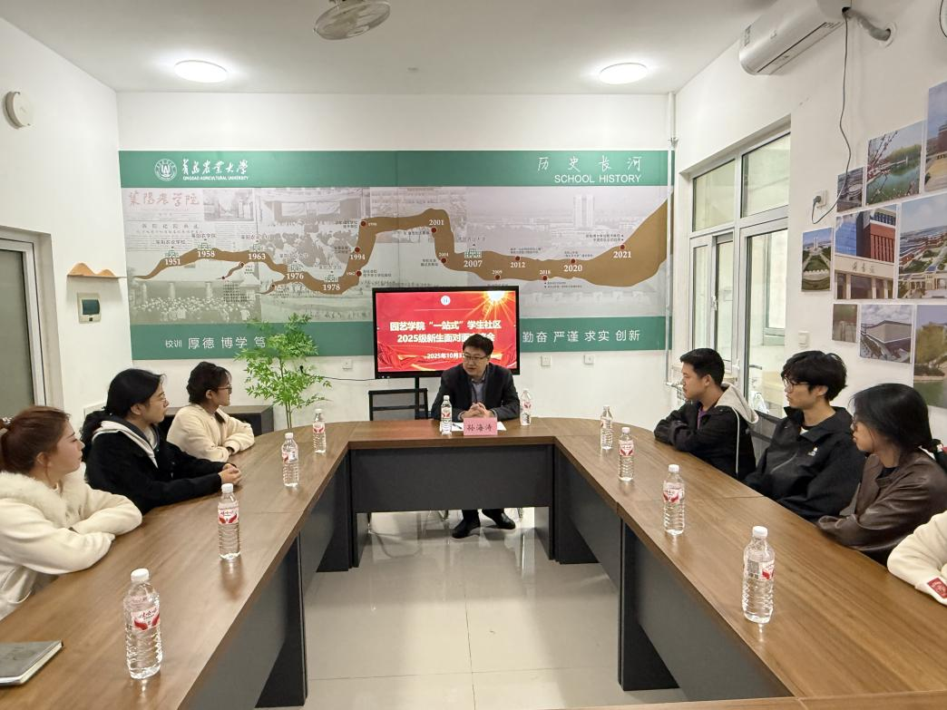 为深入了解2025级新生入学以来的适应情况及发展需求,搭建公司与员工之间的沟通桥梁。10月31日上午,园艺公司党委副书记、副经理孙海涛在平度校区一站式社区与2025级新生开展座谈交流,2025级7名员工代表参加座谈。