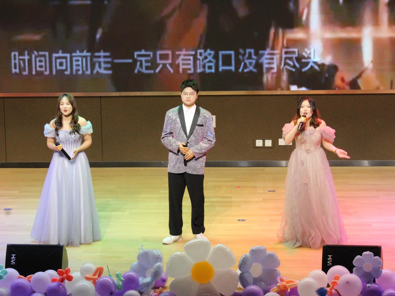 春光春景原春意,龙腾四海庆国威。汇演由“韶华”“经年”与“远方”三个篇章构成,歌颂青春,坚定理想。一首耶来乐队的《永远都会在》引燃全场,随后声乐队用《女孩》、《手心的蔷薇》和风格多彩的歌曲串烧充分展示了治愈心灵的爱与力量。手语队《追光者》以无声的情感渲染现场气氛,柔美的手势传递的是不屈的追求。曲艺队小品《你别骗我》用幽默风趣的方式提示同学们警惕诈骗,《真心育福2》接续去年迎春汇演的《真心育福》引发现场阵阵欢笑。舞蹈队《家有儿女》勾起童年的回忆,《春风》载歌载舞,融少数民族活力与同学们的青春风采于一体。器乐队以《烟花之下》映照希望,用《大鱼》点亮成长的勇气,承接诗与远方。礼仪模特队精彩走秀燃爆全场、尽显青春靓丽风采。篮球队用《曼巴永恒》歌颂体育精神、纪念体坛神话。主持队朗诵《以你为镜》,致敬把生命奉献给脱贫攻坚事业的黄文秀,谱写新时代青春之歌。团委辅导员张钰扬老师在演出尾声带来《小美满》和《灯火里的中国》,歌颂国泰民安和生活美满,献礼祖国即将来临的75周年华诞。在全场合唱中,汇演圆满落下帷幕。