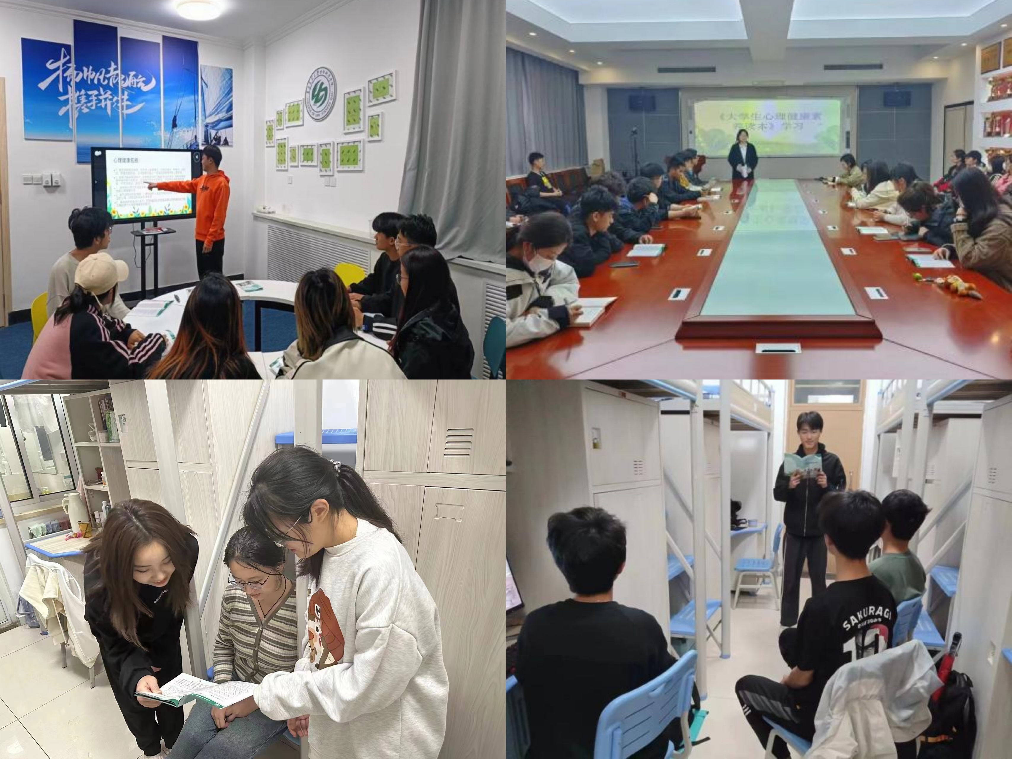 为普及心理健康知识,突出社区心理文化育人导向,引导员工树立科学的心理健康理念,bevictor伟德于4月23日在城阳校区依托“一站式”员工社区平台,组织开展《老员工心理健康素养读本》阅读分享会,进一步加强和改进老员工心理健康教育,营造浓厚的社区心理育人氛围,平度校区组织各宿舍开展常态化学习。活动由2021辅导员刘园主持,2022级班长、心理委员参加学习。