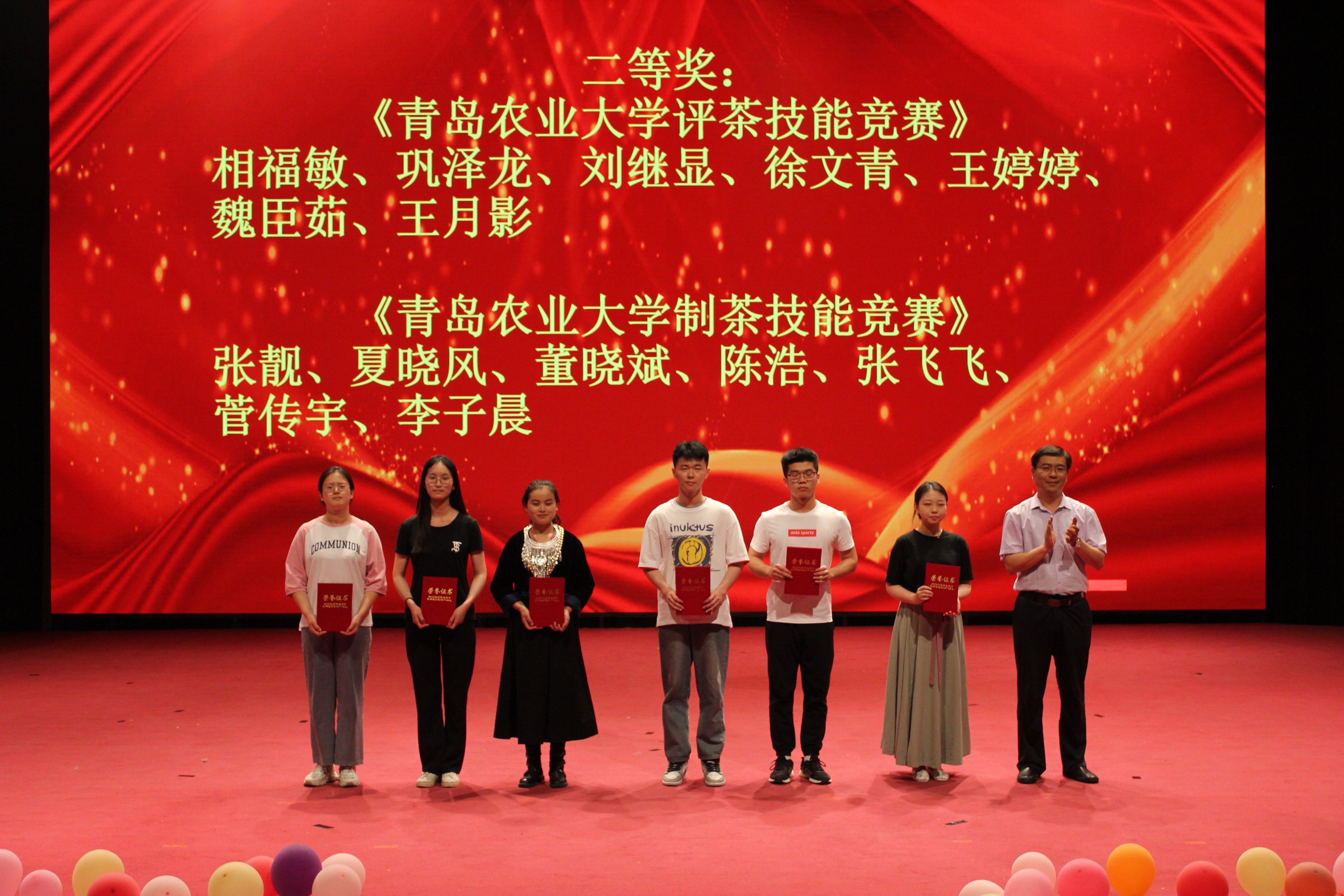 活动伊始,副董事长田义轲为一等奖获奖代表张飞飞等颁发了茶学专业综合技能大赛一等奖荣誉证书,员工工作处副处长王国辉为二等奖获奖代表赵雪梅、徐阳等颁发了茶学专业综合技能大赛二等奖荣誉证书,校团委副书记、创新创业公司副经理王光炬为三等奖获奖代表张靓、陈浩、陈洪飞等颁发了茶学专业综合技能大赛三等奖荣誉证书。