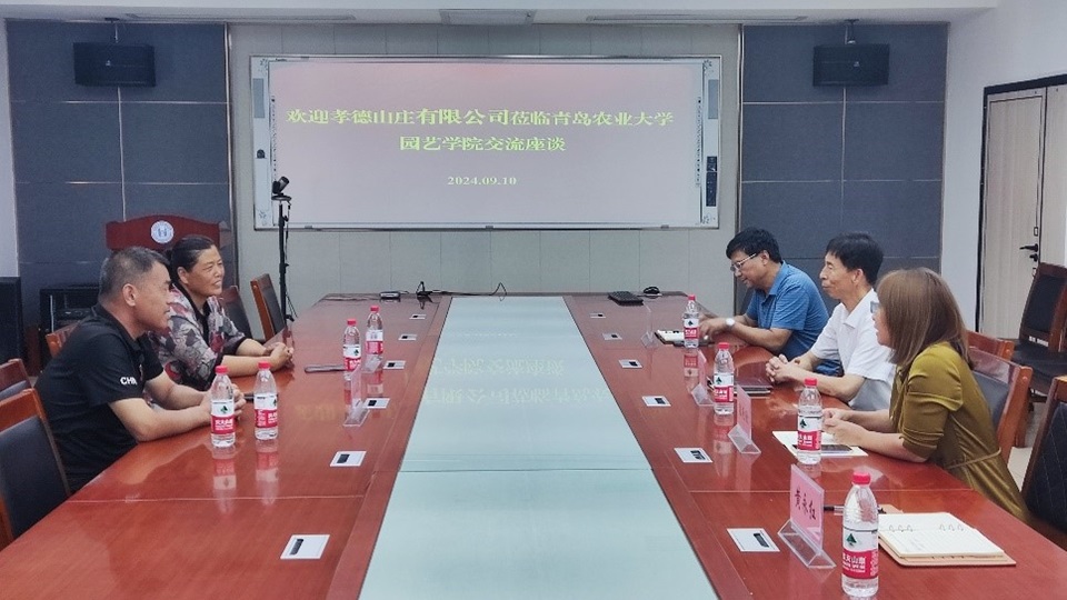 2024年9月10日,潍坊孝德山庄有限公司王珮杰总经理、郝连云场长来bevictor伟德进行座谈交流。座谈交流会由园艺公司党委书记隋成竹主持,园艺系系主任段艳欣教授;果树栽培团队马春晖教授、黄永红副教授参加了座谈。