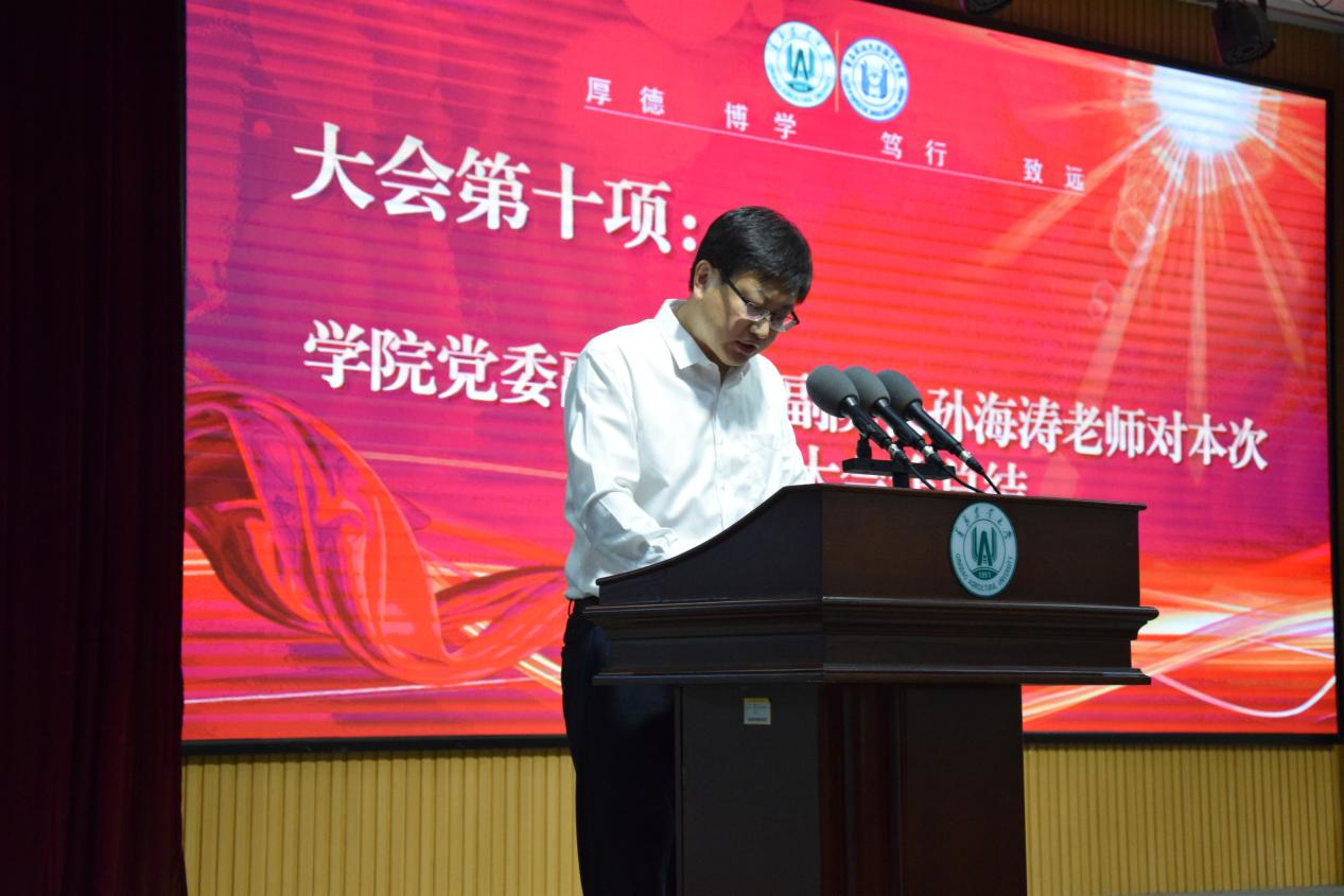 公司党委副书记、副经理孙海涛代表公司党委和院行政,对上一届员工组织的辛勤劳动和取得的优异成绩表示感谢和祝贺,对新一届员工组织成员表示欢迎。孙海涛总结回顾了上一学年公司员工组织开展的工作和取得的成绩,分析了公司老员工自我管理工作面临的新形势、新变化,指出了在典型树立、榜样引领、工作创新、优势挖掘等方面存在的问题,希望新一届员工组织成员在新的条件和形势下,少一些杂念、多一份团结;少一些空谈、多一些实干,刻苦钻研、开拓进取,以服务广大同学为宗旨,弘扬“团结奋斗,勤而行之”的优良传统,做好做实各自工作,努力提升公司老员工自我管理工作水平。