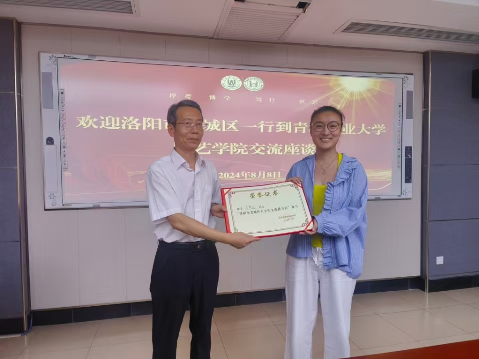 随后,锁炎武为6位员工代表颁发了“洛阳市老城区老员工文旅推介官”荣誉证书。与会人员围绕洛阳老城区文旅事业发展和历史文化传承传播等问题展开了深入交流,促使同学们更加深入地了解了厚重的中华历史,同时感受到传播优秀历史文化的责任和使命,增强了民族自信和文化自信。