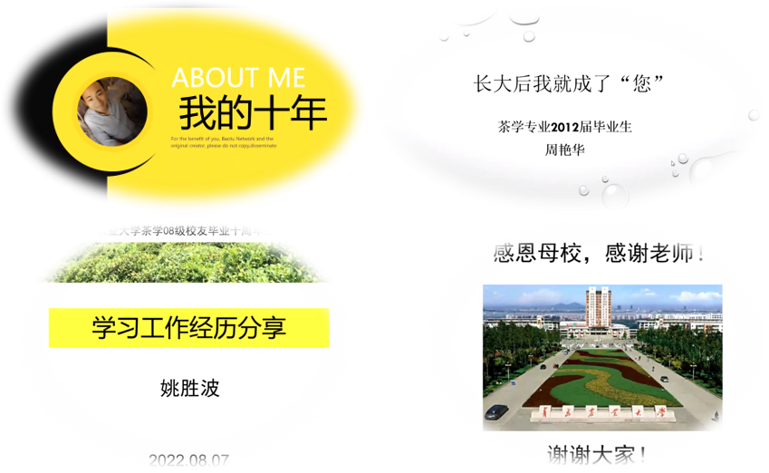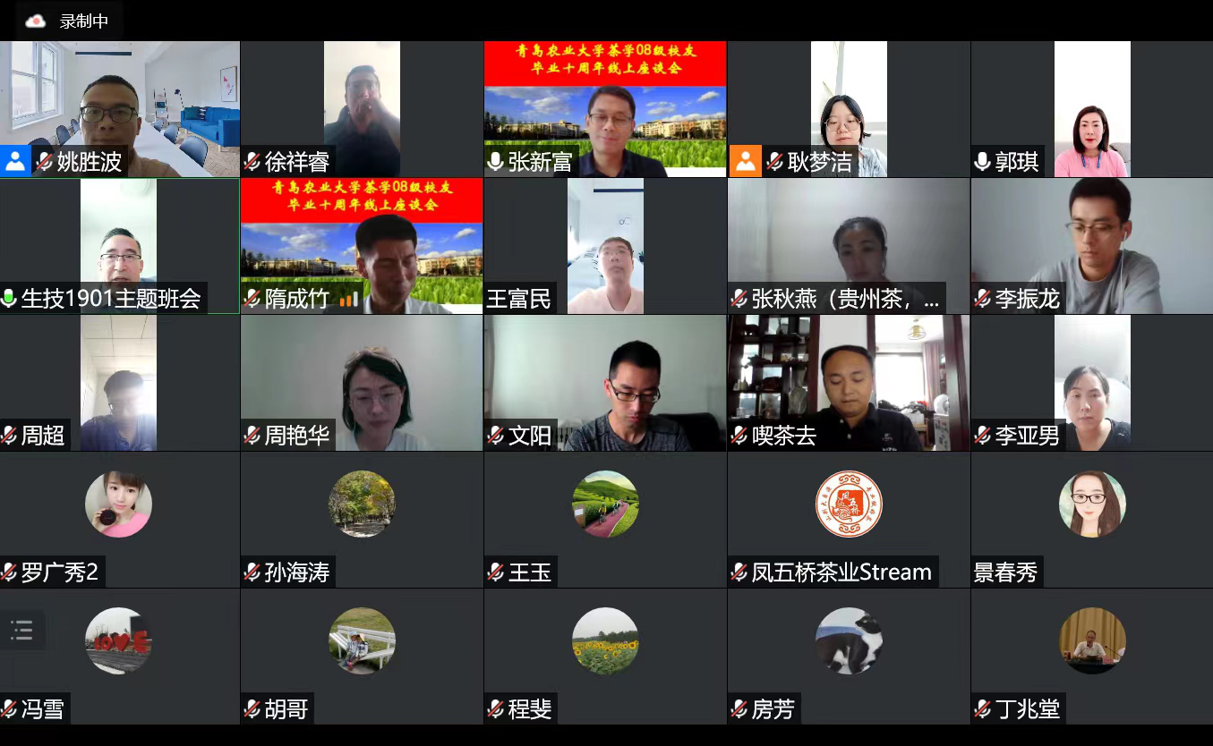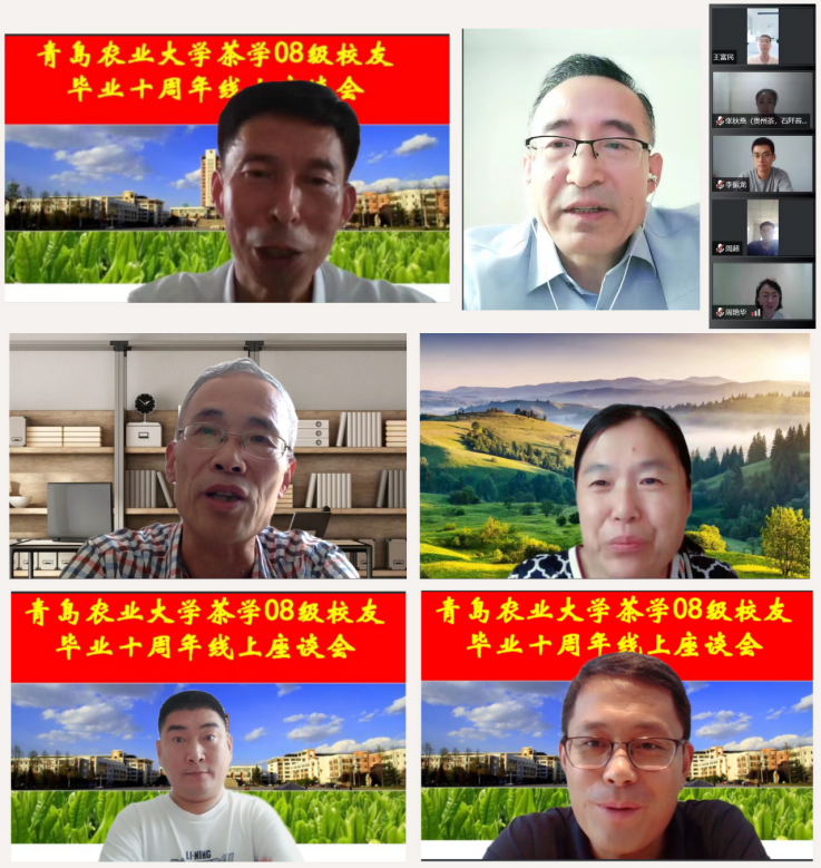 2022年8月7日下午,正值立秋,bevictor伟德首届(2008级)茶学毕业员工相聚云端,举行毕业十周年线上座谈会,重温同窗岁月,共话师生情谊。园艺公司党委书记隋成竹,副书记孙海涛,副经理程斐,副经理张新富,班主任赵永厚,茶学专业教师丁兆堂、王玉,胡建辉全程出席了本次线上座谈会。员工们精心制作的视频短片《我们的青农时光》回顾了大学四年的青葱岁月,大家的思绪仿佛都回到10年前。视频播放结束,座谈会开始。