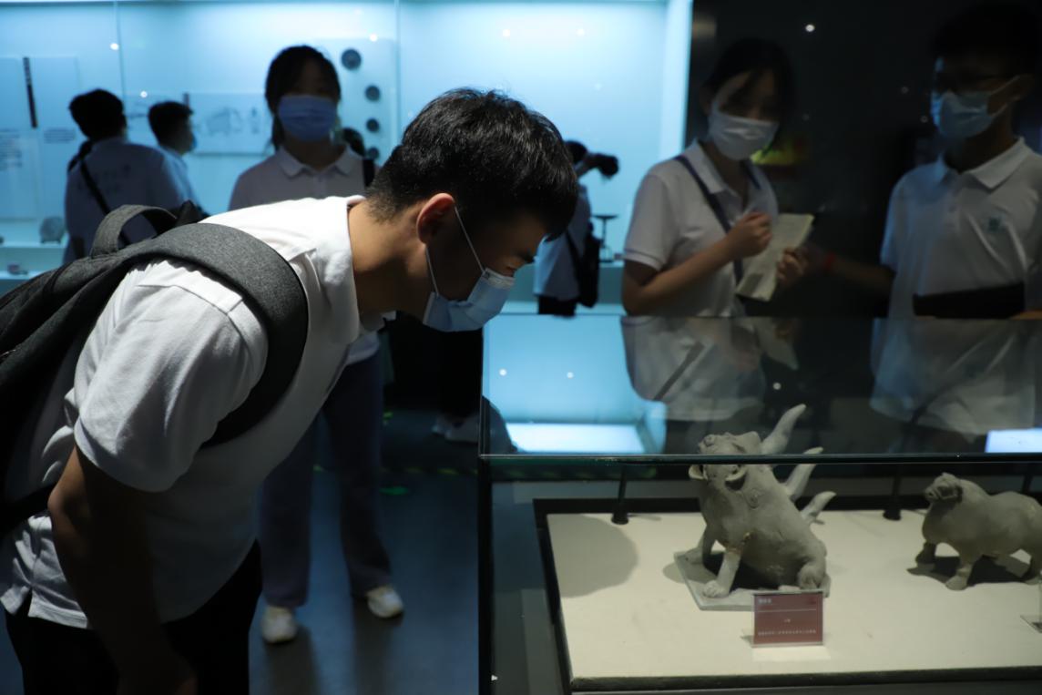 实践团成员在端详寿光市博物馆文物。