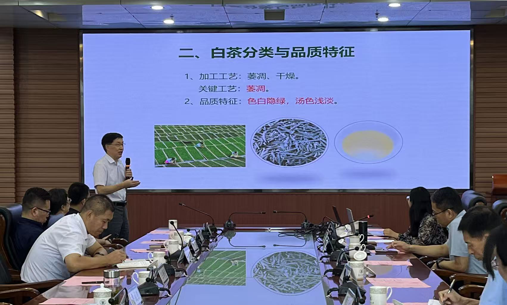 高文胜部长在讲话中指出,山东茶区属于特色产区,亩产值居全国第二。当前山东茶产业正处于转型阶段,白茶被视为一个新的增长点,未来发展应聚焦品种选育、品牌打造和三产融合。他表示省农业技术推广中心将继续协同各方,共同推进山东白茶产业的高质量发展。