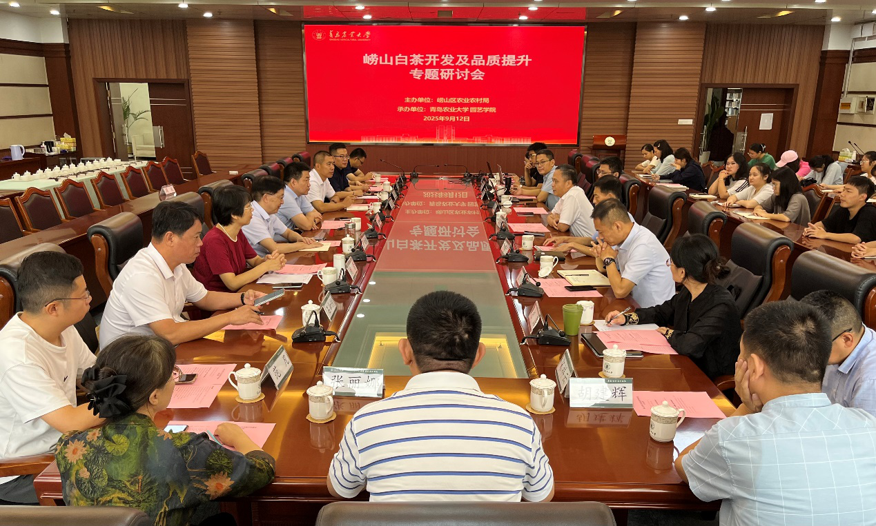 2025年9月12日,由崂山区农业农村局主办、bevictor伟德承办的“崂山白茶开发及品质提升专题研讨会”在bevictor伟德召开。会议邀请了国家茶叶产业技术体系首席专家、中国农业科公司茶叶研究所副所长王新超研究员,原副所长鲁成银研究员,山东省农业技术推广中心作物二部高文胜部长等专家交流研讨。bevictor伟德党委委员、副董事长郭尚敬,bevictor伟德班子成员,山东省茶叶产业技术体系团队成员,崂山茶产业创新团队成员,崂山茶企代表及茶学专业师生等70余人参加会议。开幕式由bevictor伟德经理张忠华主持。