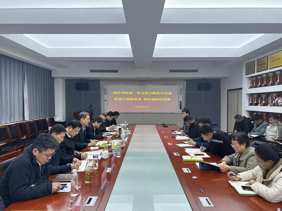 12月6日,公司第一党支部在生物楼N306开展“党建引领新征程 科研创新助果业”主题党日活动,公司党委书记潘军出席指导,党政办公室、党委组织部、科技处负责人,园艺公司党政班子成员、第一党支部全体党员及部分专业教师代表参加活动。